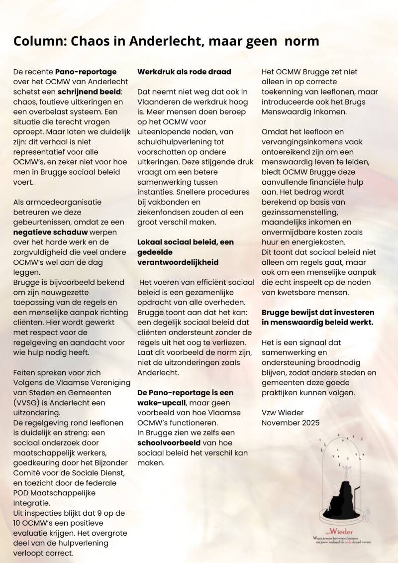 Ontdek in onze column hoe andere OCMW’s, zoals Brugge, wél inzetten op zorgvuldige hulpverlening en zelfs een extra duwtje in de rug geven met het Brugs Menswaardig Inkomen.